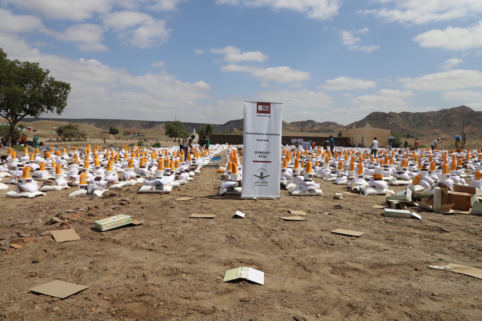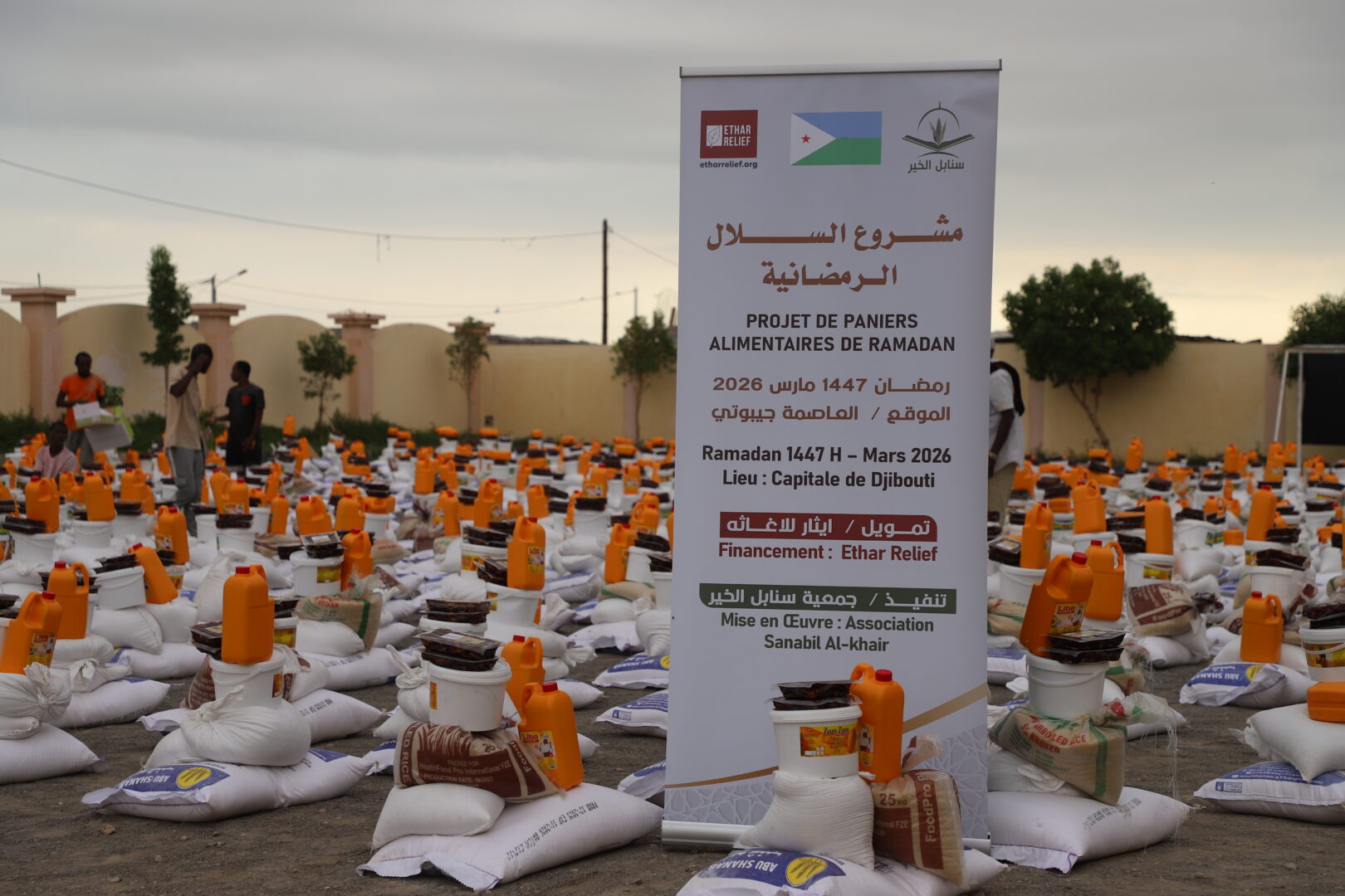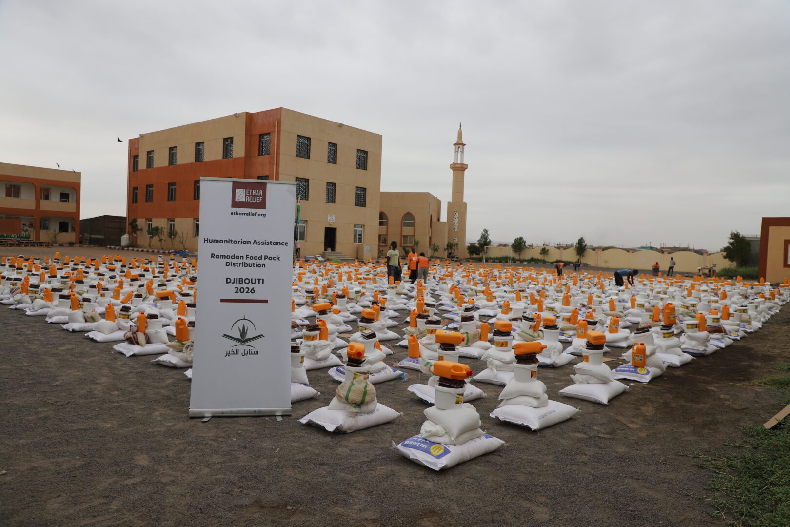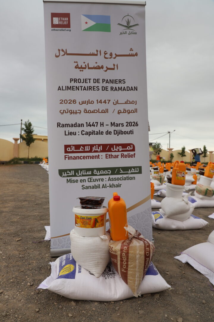 ففي جانب الإغاثة الغذائية، نفّذت الجمعية مشروع السلال الرمضانية، حيث تم توزيع (6730) سلة غذائية في عدد من مناطق العاصمة جيبوتي، شملت أحياء: سيتي نصيب، بكادوز، أرحبا، وورابلي، إلى جانب أربع محافظات هي: علي صبيح، تاجورا، أبخ، ودخل، مستهدفةً الأسر الأشد احتياجًا، بما في ذلك الأيتام والأسر المتعففة واللاجئين، الأمر الذي أسهم في التخفيف من الأعباء المعيشية خلال الشهر الفضيل.